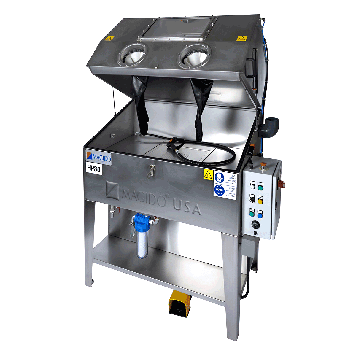 MAGIDO HP (High Pressure) parts washers are designed to blast your parts clean using a high-pressure spray wand and aqueous detergent.