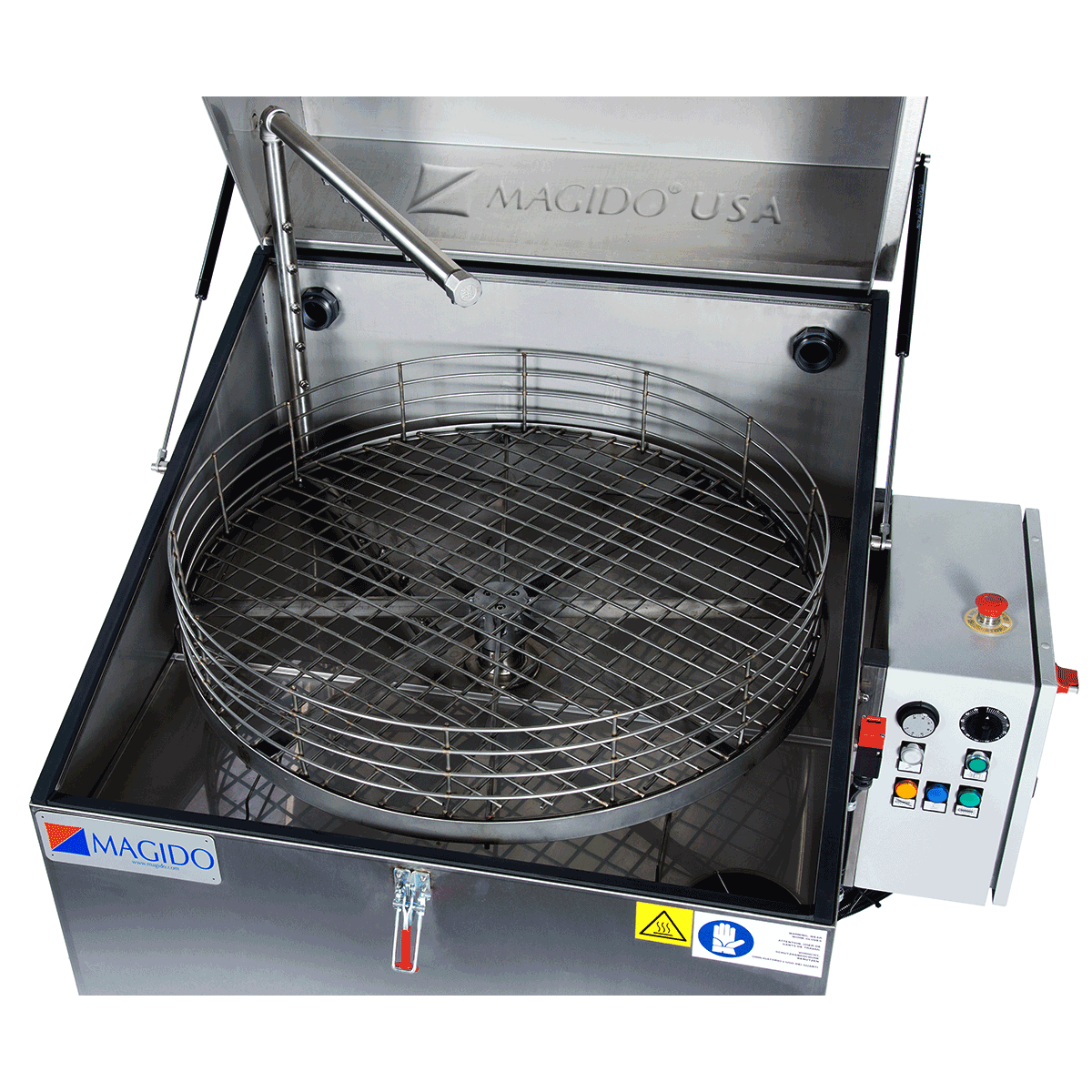 The L-101 parts washer is automatic spray jet wash system that is constructed using AISI 304 stainless steel. Each wash system is equipped with a rotating turntable and a spray bar that uses water pressure to speed the cleaning process. The L-101 is engineered to reduce labor cost without sacrificing wash performance and are perfect for your toughest cleaning applications!