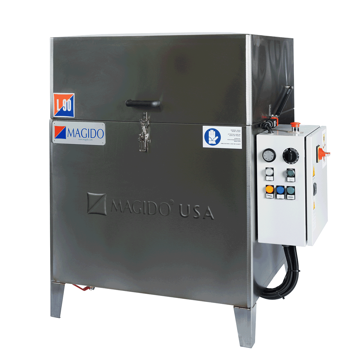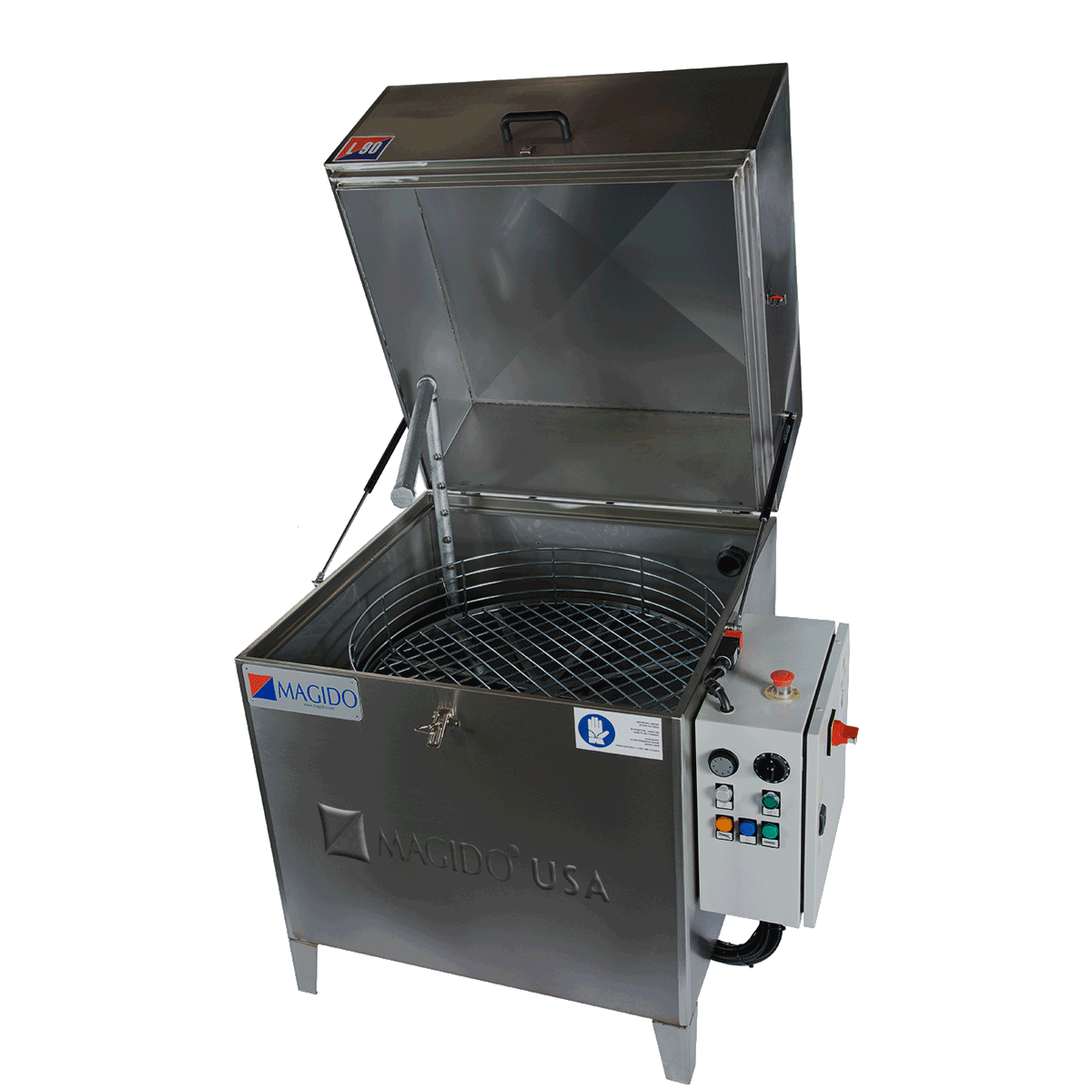 The L-90 features a compact top load design making these parts washers the ideal choice for smaller work-cell and repair operations. These washers are available in 3 models with turntable sizes ranging from 15 to 30 inches.